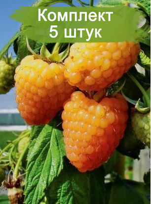 - В комплекте 5 саженцев малины Голден Эверест, готовых к посадке.